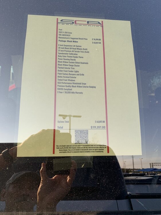 These are probably true statements. If you frequent any area ~ 30 miles west of I-35, you'll see the extreme opposite of the statistics. I would think +70% of vehicles in the Hill Country are trucks and the majority are used "off road" and for hauling stuff on a regular basis. Never using the trucks for hauling and frequently using the trucks for shopping are not mutually exclusive, as shopping for and hauling a 1000 lb of corn & protein is a pretty frequent occurrence. Though some truck drivers ... Saw this 2021 F250 while waiting for service, a cool $119,357 + TT&L. The little dick douche that bought this is the left-lane hogging, over-the-line parking, never on a dirt road, tailgating, SOB we all have to deal with.