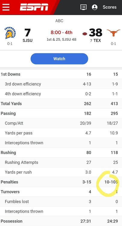 21. Texas 42 SJSU - 9 259 Yards rushing