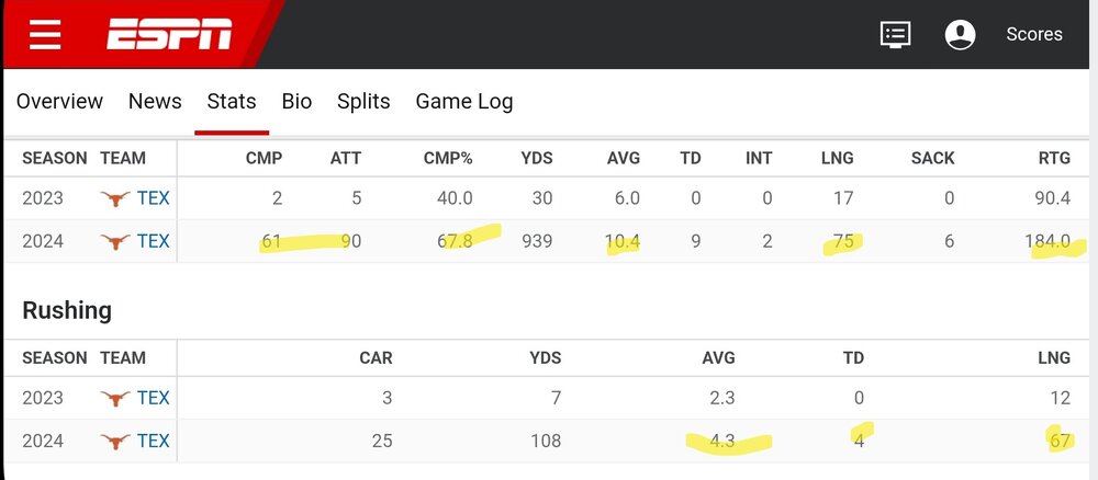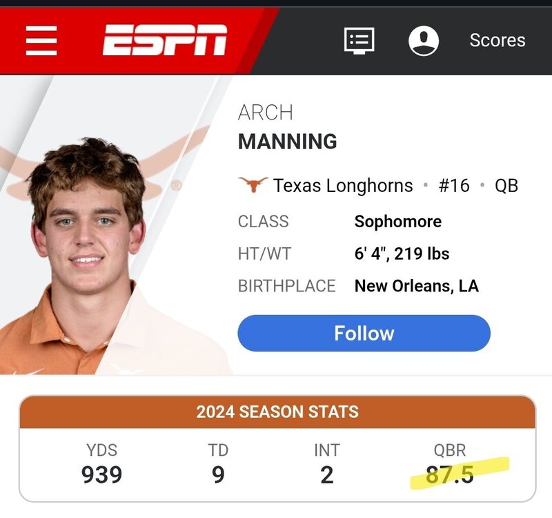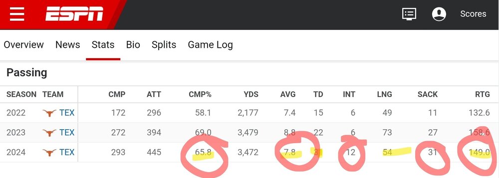 My view was that Sark understood that his reputation as the QB whisperer would be tarnished. He also knew his commitment to his own words, "Ewers is our starting QB" prior to the season contributed further. In essence, Sark dug his own hole, his ego and fear of negative media coverage, possible negative influence on recruiting (maybe even in the 2025 cycle) and his own reputation as the QB Whisperer might be permanently tarnished if he made the switch. Further, as we discussed/suspect and evidence supports with the NFL camp, it was Ewers mental and technical aspects. Again, the QB Whisperer ego lead Sark astray in the "I can fix him" way.