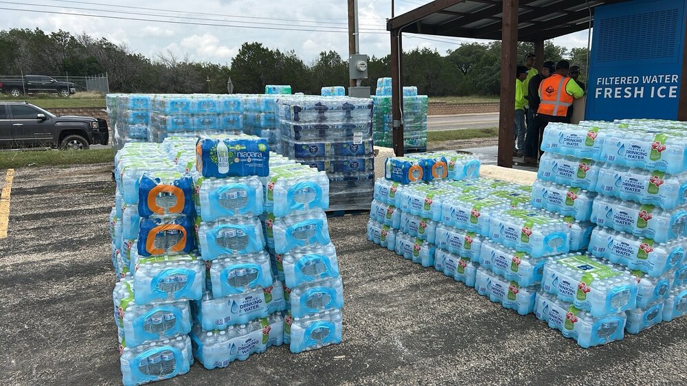 Following up a bit to what @West Kerr Horn noted above. Spoke with @InkaUtexas who was out there. In good news, the supplies and need for people is well met at this point. He sent me a pic which I will post below. Based on his information it sounds like there isn't a ton of structure nor infrastructure damage. There was a ton of resources from Federal, State and other broad local Texas assistance. There is not currently a need for people nor resources, again based on information from Inka while on site. This may change but its the current reality. In emergency response there are 3 points as a volunteer. 1) Don't add to the issues 2) If you're not contributing you're in the way. 3) If you fall into area 1 or 2, leave. Sounds harsh, but its truth. Inka and his friend found themselves as #2 so they are choosing #3. I told him I would provide this update so I am. Here is 1 pic of all the water at a single location. They legitimately had too much stuff.