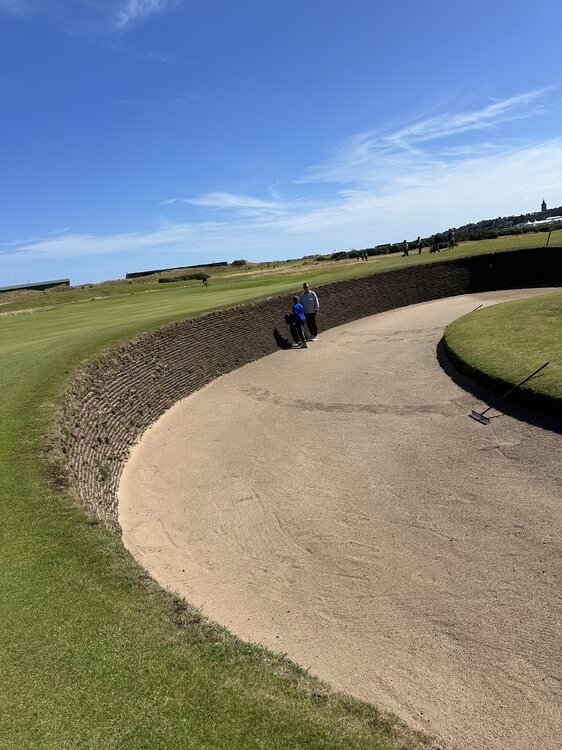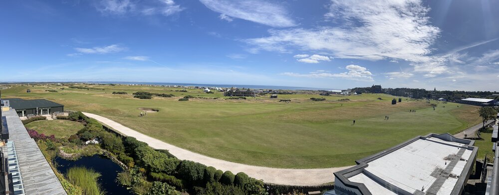 6. Took the family vacay to Ireland and Scotland this year. Stayed at the Old Course Hotel in St. Andrews toward the end of the trip. Our room looked out over the Road Hole... My youngest and I are the only golfers in the family so we didn't plan to play but we stayed on Saturday night so we could walk the course on Sunday morning. Finished by playing the Himalayas putting course. Overall very fun and spent way too much $$$ at the pro shop. Definitely want to go back to play a round at some point. IMG_5286.mov