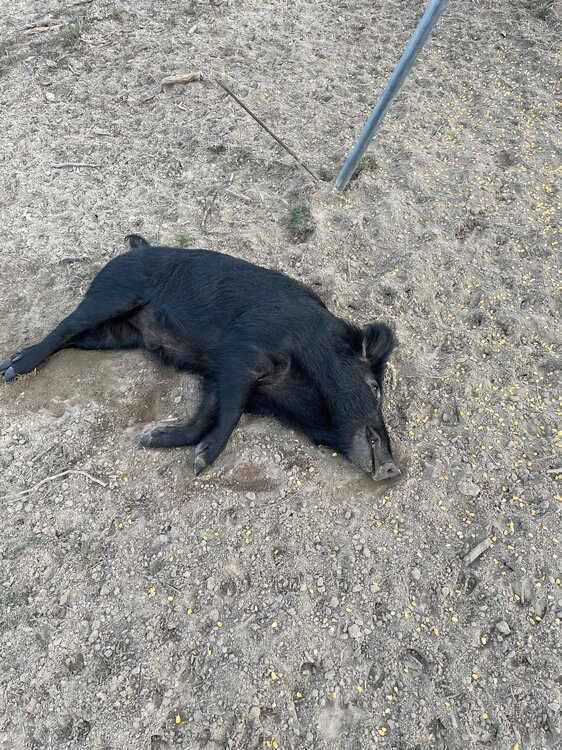 5. Made it out to the lease Wednesday despite getting sick earlier in the week. Wasn't fully recovered but needed to get out of the house and was gonna be heading that direction on Thursday anyways. Almost passed on heading out to the stand that afternoon but sacked up and dragged myself out. Ended up getting my first kill at this place. Didn't get a chance to actually weigh him, but this grungy SOB had to be at least 150 lbs just based off how much of bitch he was to drag off into the woods by myself. Coyotes got quite a little Thanksgiving dinner courtesy of me. Most of him was already gone when I stopped by again Thursday morning.