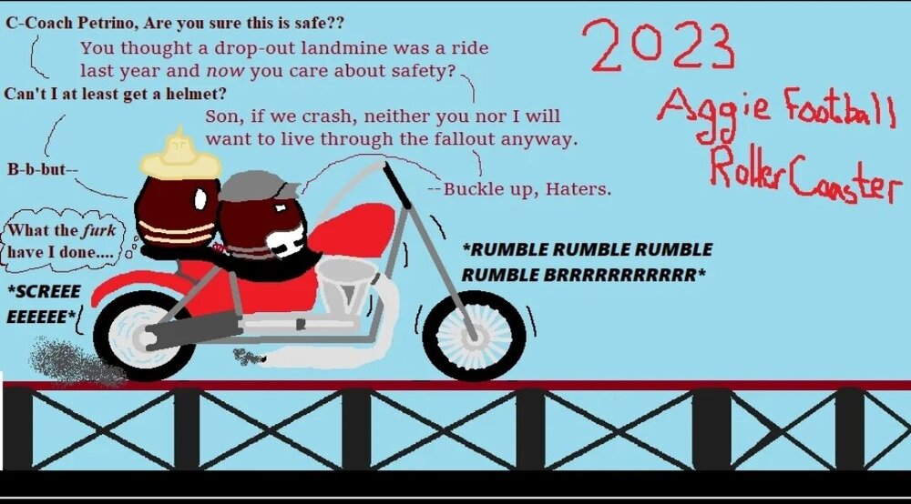 19. I believe it's supposed to be an Aggy riding on Coach Petrino's bike, which is about to be driven up our favorite MS paint rollercoaster