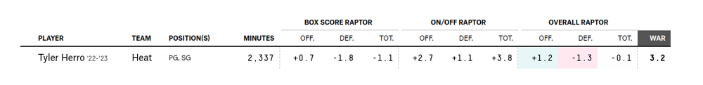 3. By RAPTOR Lavine is 96th and Herro is 136th. So, yes, in a vacuum most metrics agree that Lavine is a better player. But, no, most metrics do not paint Lavine as elite, and, no, the evaluation is not in a vacuum. Herro represents better value currently and better medium term potential. Lavine is what he is. Herro is still coming along.