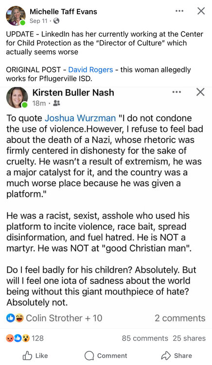 7. FYI, this shit is happening locally. She added a Pflugerville city council member to her post