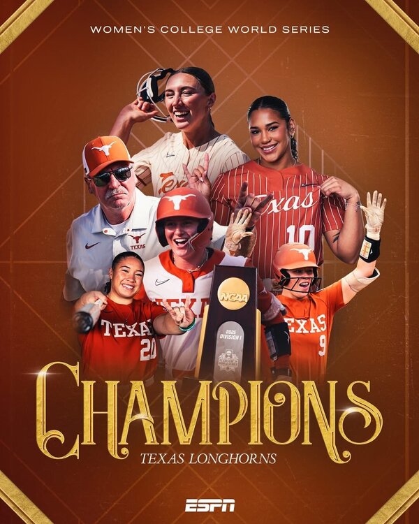 Anyhow, really enjoyed the posts here (most...not all) and Js1's contributions....a women's sport's book of knowledge...hope next year can duplicate and we can repeat. Waking up this morning with a National Championship was great. Now, I'll watch some men's baseball and root against LSU, Tenn, and Arky....maybe I'll pull for UTSA...enjoyed the season.