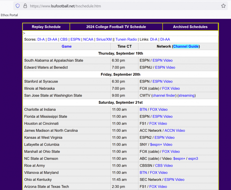 13. PSA, this is a good guide for TV schedule https://www.lsufootball.net/tvschedule.htm