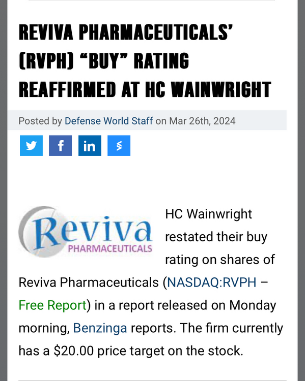 2. Friday, RVPH closed at $2.89. Yesterday, it closed at $3.14. Today, RVPH +.53 to $3.65. Holding 15,000 shares at an average cost of $6.87.