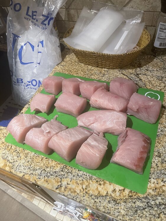 4. Went out with Deep Sea Headquarters on Saturday. Free-lined a Sardine on a small hook and no leader, as per the rec from the deckhand. While the entire boat was catching Red Snapper we hooked into this Wahoo, lucky catch, glad it wasn’t a Kingfish. 37 lbs, 48” fillets.