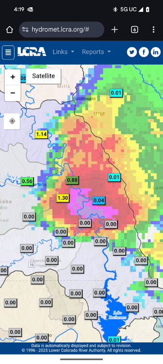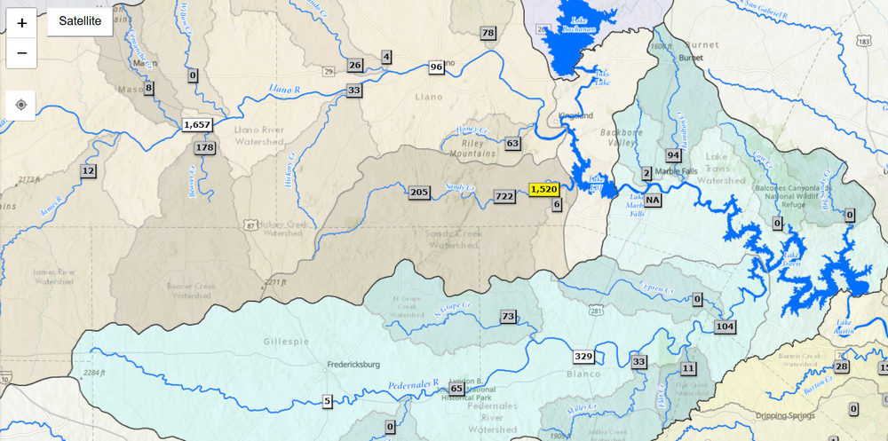 6. Totally... I hate watching the rains just pooooour in areas like Lampasas and Round Rock knowing not a lick of it will go in the lakes. On a side note, is the Pedernales the most worthless tributary to the highland lakes? Oh... look at all that rain! "Here's your 120 cfs"