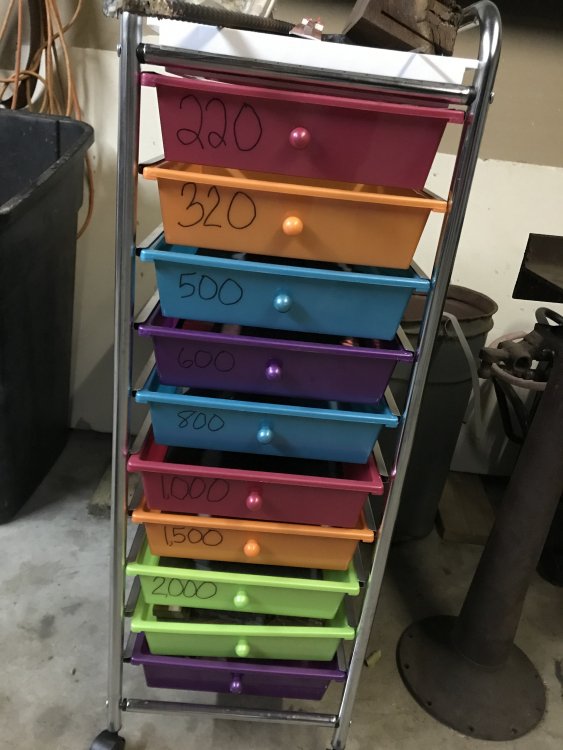 5. the one with red/black is cpm154, the damascus is 1095 and 15n20, the rest are aeb-l stainless. the stainless and cpm are a little in depth. have to normalize then wrap in stainless foil. then get up to about 2000 and do plate quench in aluminum. have also done cryo quench with the aeb in dry ice and acetone. all the aeb tested to around 60rockwell after temper which is pretty good. the 1095/15n20 is easy. one step 1475 then straight to oil.. . then an etch in ferric chloride. that shit rusts and i wont do any more. i have tried all kinds of different steels and will probably use aeb-l, 440c and cpm 154(when i can get it) only from now on.