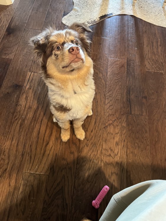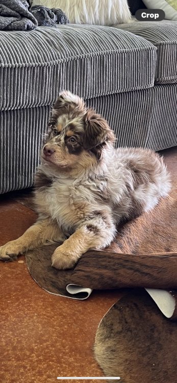 16. We have a new puppy. We had to put down one of our two Minnie Aussies last May, just about had to put me down with her, really miss the ol girl. Here is Maggie, she is a MA too. She is about 16 weeks old in this picture.