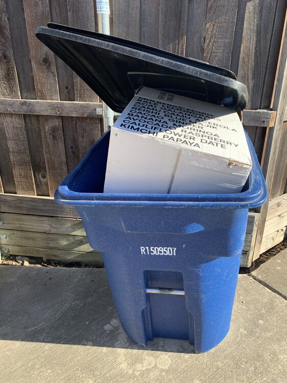 9. Trash/Recycle day was yesterday. There is literally nothing else in this recycle bin besides this giant box from one of her stupid meal/smoothie delivery services.