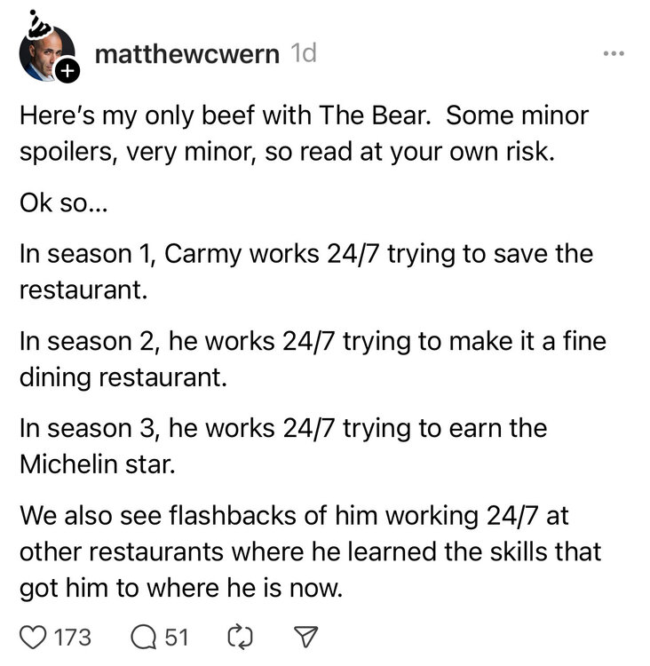 2. Let's be specific as to what he's done, that's what I don't understand. Slimeball is rather specific and as far as I know he has no me too things in his past? Is he goofy AF? For sure, but bad human? Be specific. He's the special guest because he's in the food world and isn't a working actor. Easy to slot in and honestly seems like a likable guy. Failed restaurants? Like literally every single other person who has opened a restaurant in the entire industry? He's absolutely fine. Do I love him? Naw but he's fine. I agree w you on bbq show. He was a guest judge in episode 6 of a top chef season. We had Ryan Braun as a guest judge in the next episode. Charlie Berens was a guest judge. Who cares?