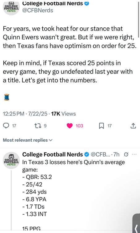 Also, dynasty and bringing in recruits in the portal can be super helpful. Brought in Ty Anthony Smith from Texas as a sophomore transfer two star who was like a 70 with star dev...dude had 46 points to spend after one year and got up to a mid 80s after I spent them. Now, he may (probably) leave next year too but can hold out hope!