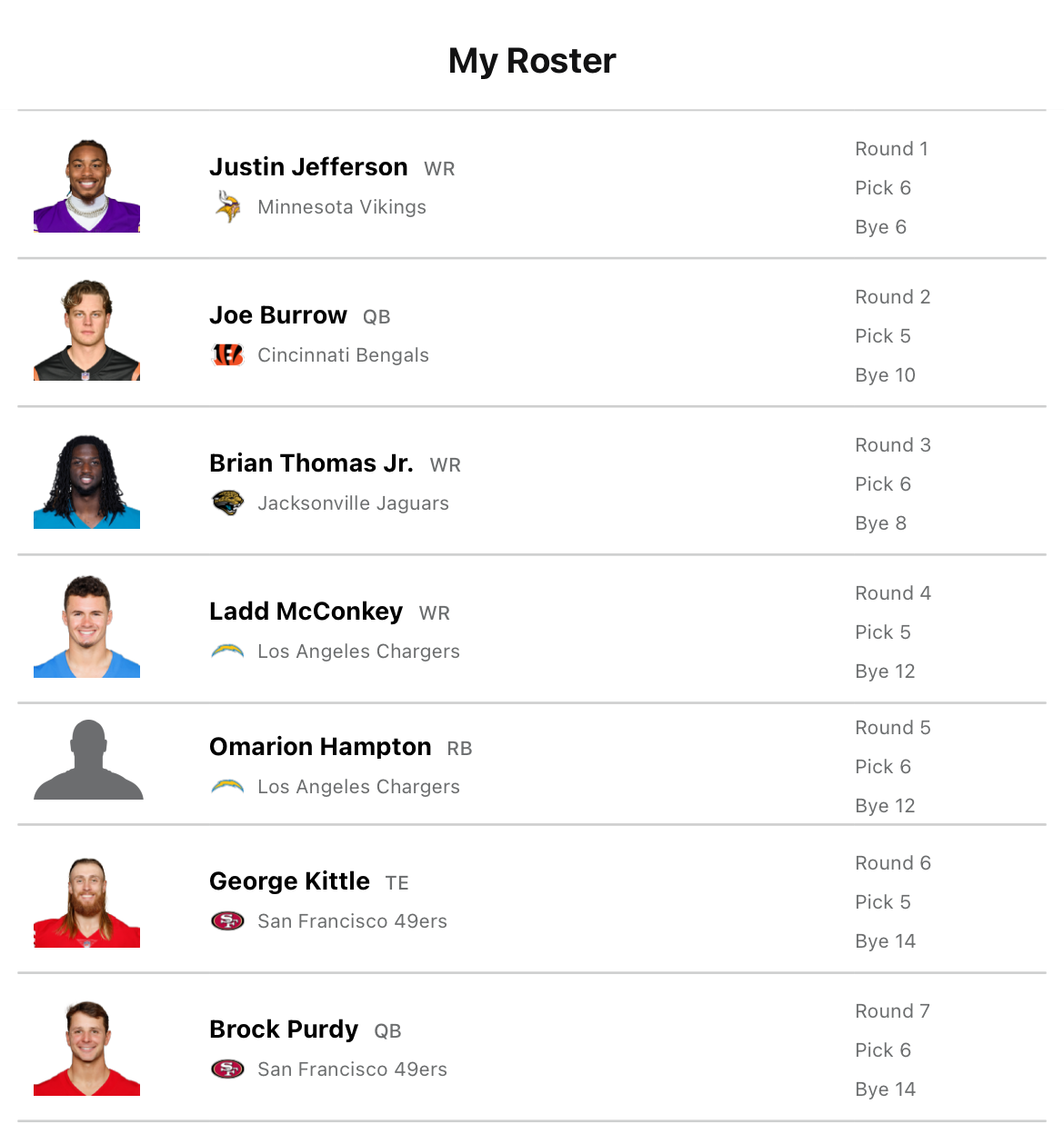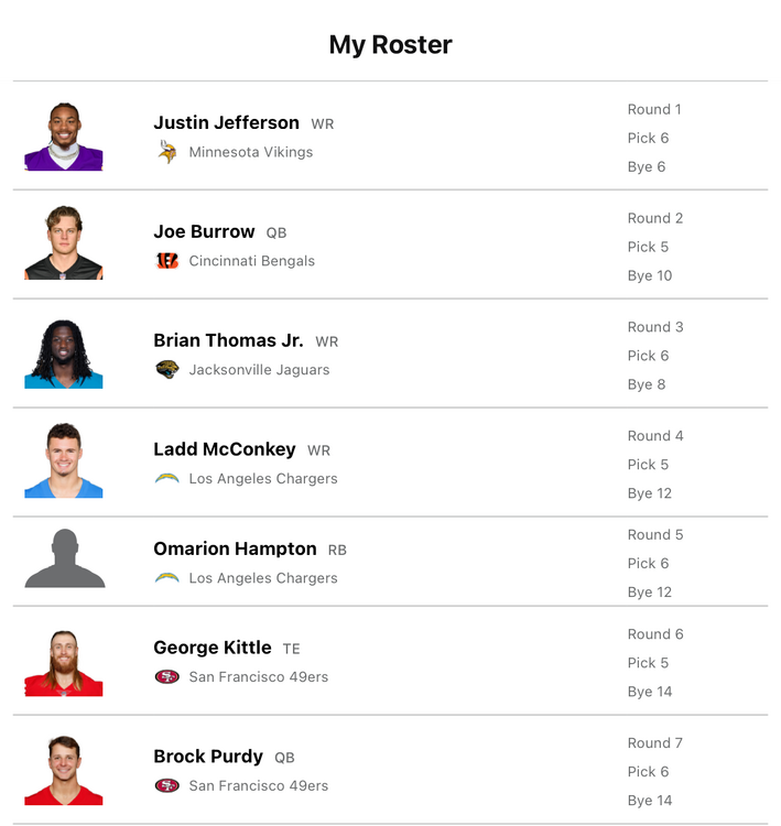 1. I’m 6-6 in my 2 QB league with these as my first 7 picks