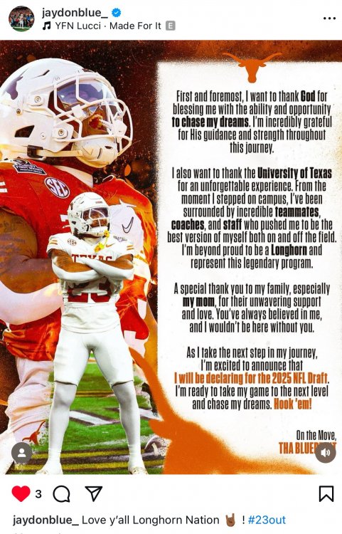 19. He's not coming back because the bmd’s and no one else involved with the program would allow it. There’s a 0% chance he’s coming back to Texas, I don’t even understand the speculation he will.