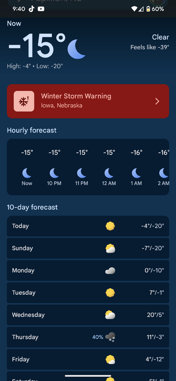 21. I walked outside to see what a -13 wind chills felt like. My clothes were fine. The wind kicking snow into my eyes was not fine.