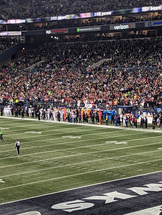 22. Buddy's wife works for the Seahawks. Knew I'm a Niners fans. 4 free tickets. Boom.