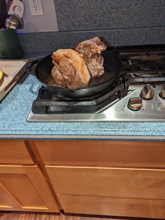 4. Saw some really thick pork chops at the commissary today. Messed around with some fig jam