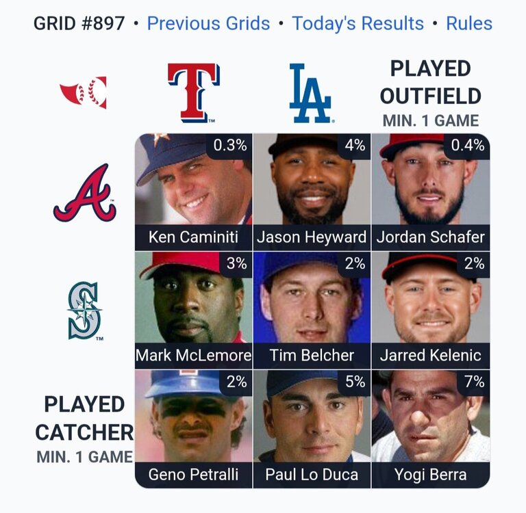 ⚾️ Immaculate Grid 897 9/9: Rarity: 25 IMMACULATE! 🟩🟩🟩 🟩🟩🟩 🟩🟩🟩