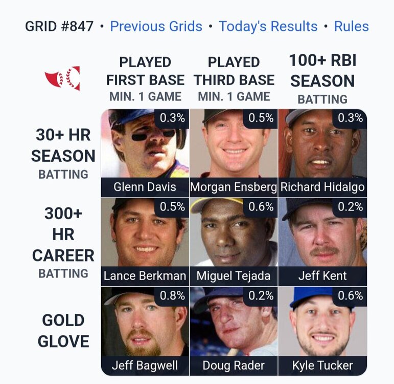 ⚾️ Immaculate Grid 847 9/9: Rarity: 4 IMMACULATE! 🟩🟩🟩 🟩🟩🟩 🟩🟩🟩