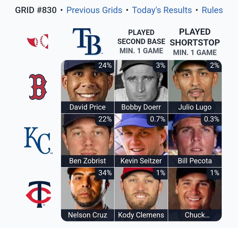 ⚾️ Immaculate Grid 830 9/9: Rarity: 87 IMMACULATE! 🟩🟩🟩 🟩🟩🟩 🟩🟩🟩