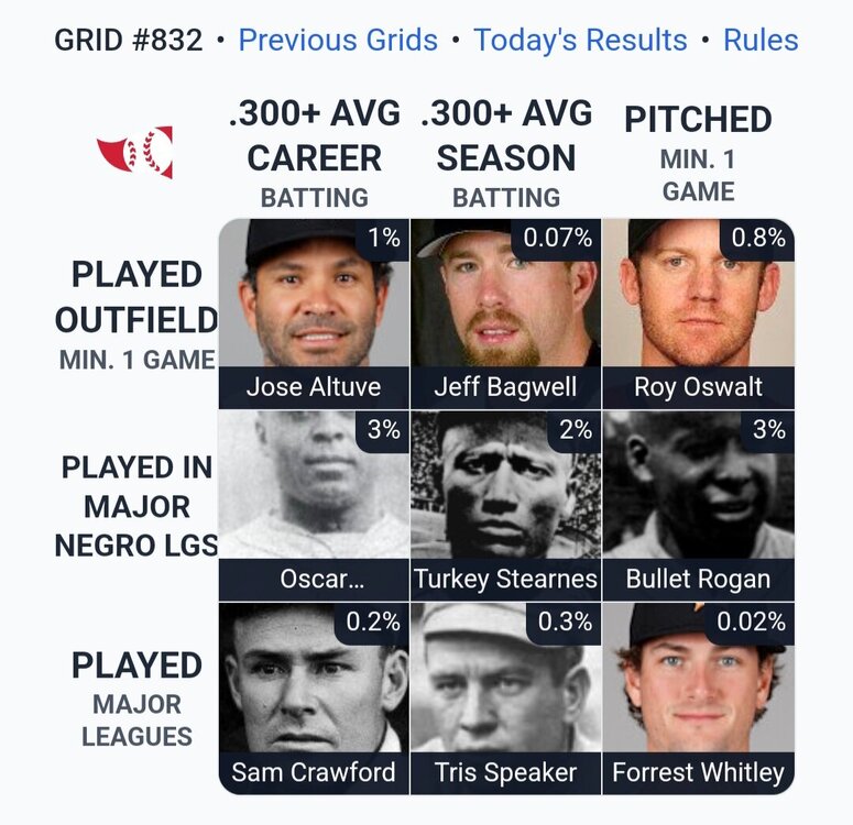 ⚾️ Immaculate Grid 832 9/9: Rarity: 10 IMMACULATE! 🟩🟩🟩 🟩🟩🟩 🟩🟩🟩