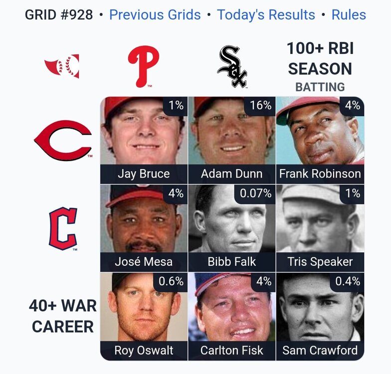 ⚾️ Immaculate Grid 928 9/9: Rarity: 32 IMMACULATE! 🟩🟩🟩 🟩🟩🟩 🟩🟩🟩