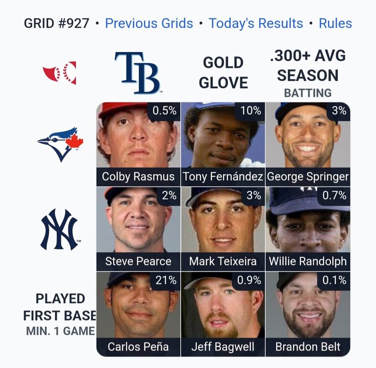 ⚾️ Immaculate Grid 927 9/9: Rarity: 41 IMMACULATE! 🟩🟩🟩 🟩🟩🟩 🟩🟩🟩