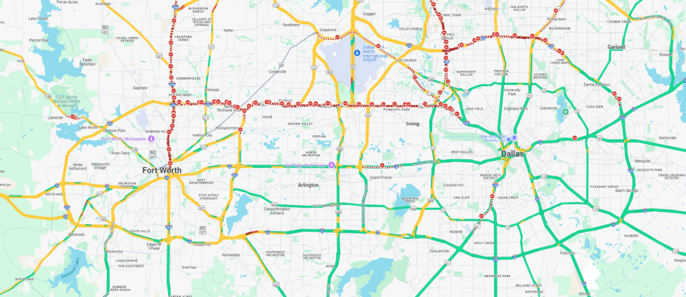 The DFW highway system is a giant wang and balls. Once you see it, you can't unsee it. Looks like there's a rash on the top side, might wanna get some antibiotics