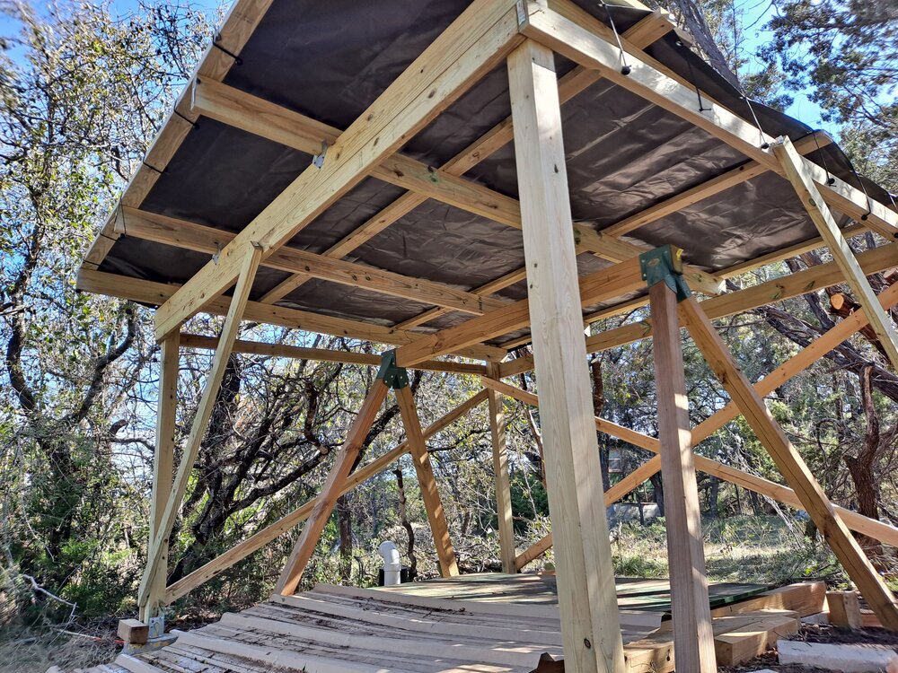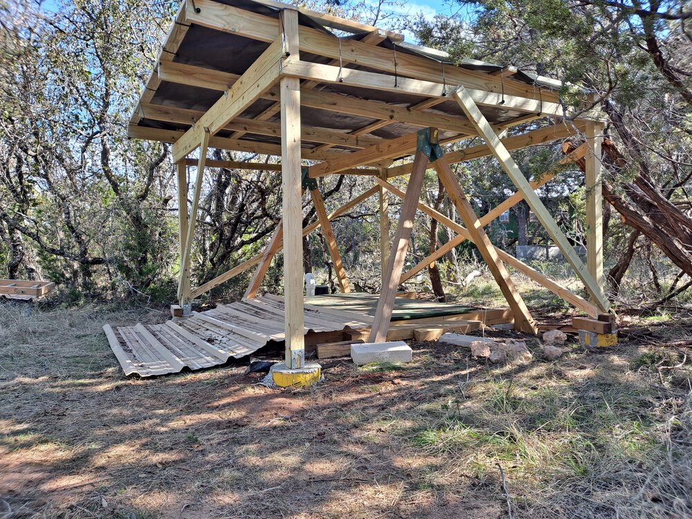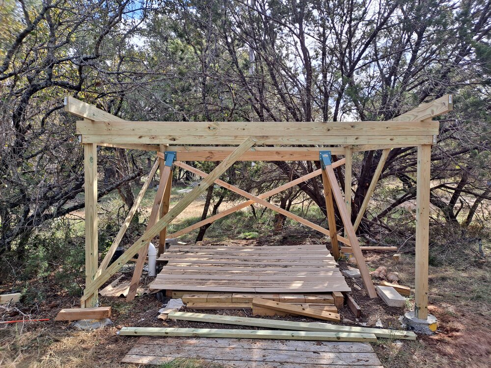 3. Well... I think it "worked" for a certain definition. But it bowed and pooled between rafters. I'm going to have to put up actual metal panels, or else basically do a plywood deck. Probably in the next couple of weeks. Not this coming week. I'm picking up a kawasaki mule, so ranch toy budget is depleted. But Jan 1 is a whole new year! And I also will build a shed roof for the mule. But at least this canopy made me confident I can that pretty easily.