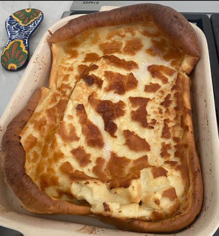 25. Stumbled across this recipe for German Pancakes earlier in the summer and have made them 2 or 3 times. Every time I make them, I marvel at how damn easy this recipe is to prepare and cook. Pancakey on sides and custard-like in bottom of the pan. Recipe I used: https://tastesbetterfromscratch.com/german-pancakes-2/