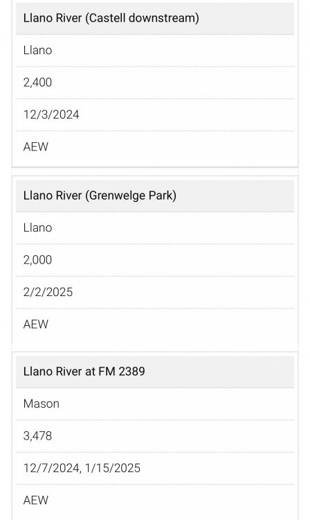 14. Thought some of you guys might want this - Llano River trout stocking dates. I used to love Dec and January days out on the Llano in years past, as I had the whole river to myself and lots of fish about ten years ago. I’ve heard the locals have started to take a lot of fish after the first few days. Hopefully it’s still good for a few weeks after stocking date.