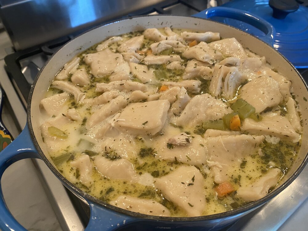 10. Pouring down rain in Tulsa this morning and cool. My caveman brain said ‘Chicken & Dumplings’ time. The sun came out and the weather turned quite warm this afternoon but the craving and meal plan was set. Good. Damn good.