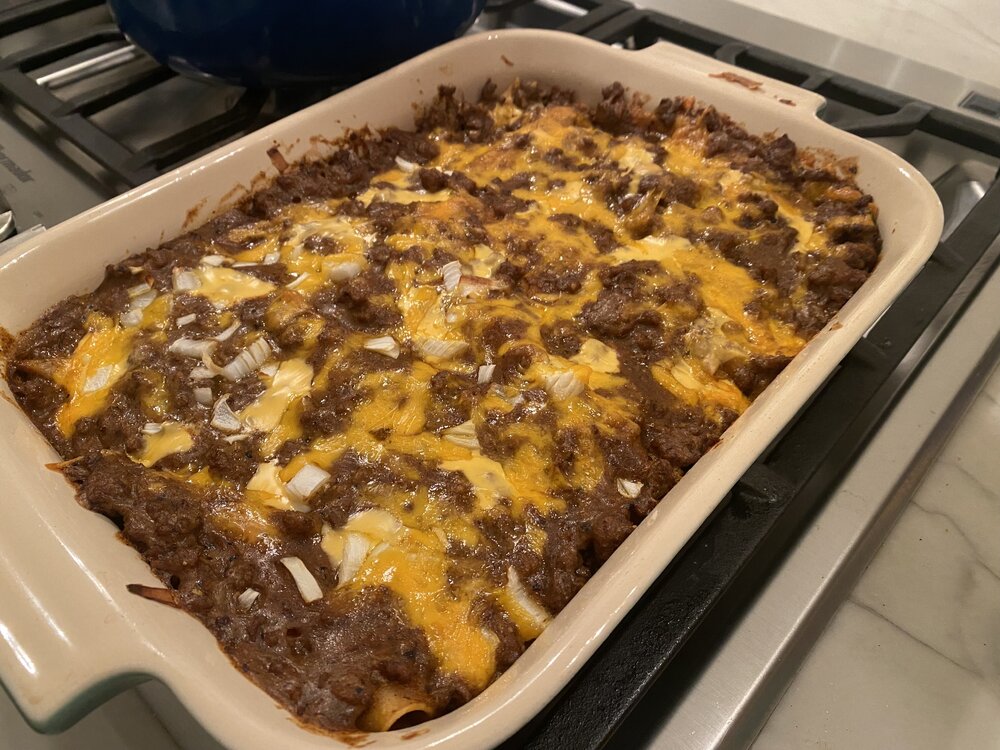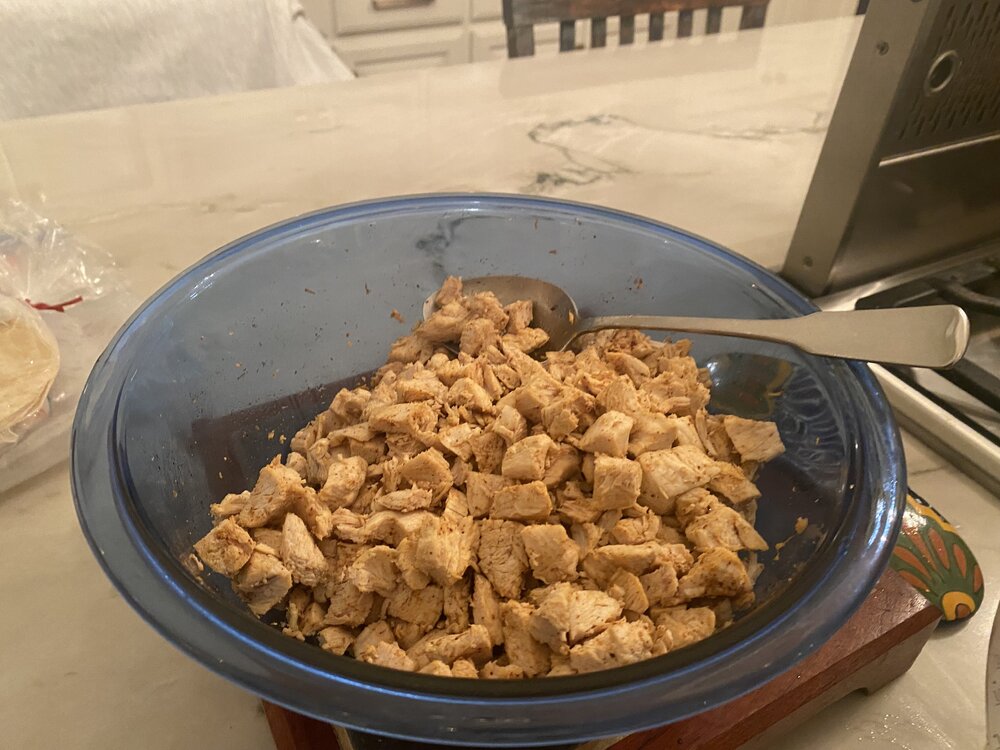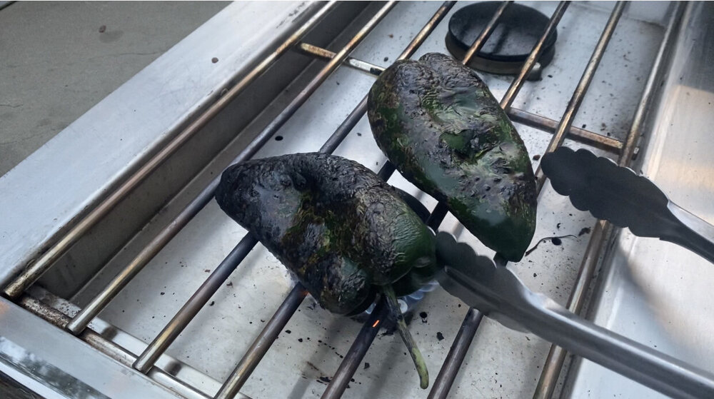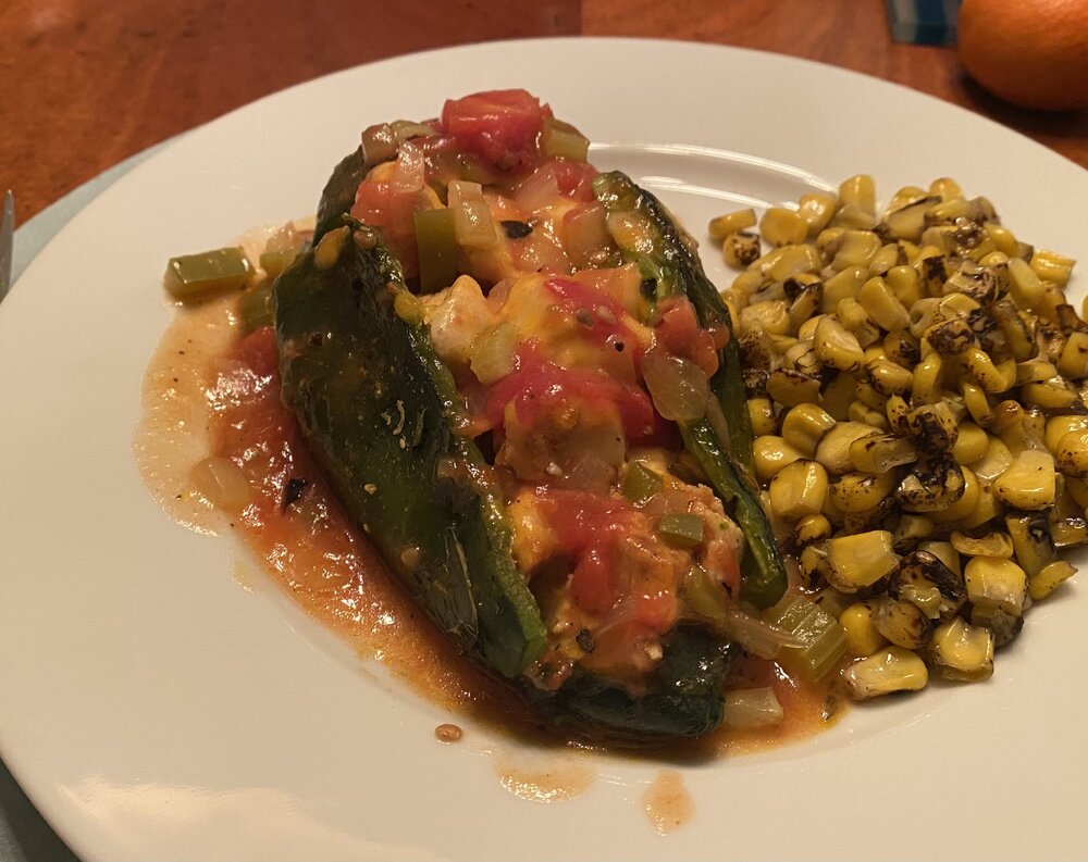 Oven roasted chicken rellenos with Ranchero sauce. Used Matt’s original cookbook for Ranchero recipe. A must have cookbook with so many good recipes: Recipe. Of course I used jalapeño: Roasted some poblanos on my outside stove. Roasting chiles has to be the best smell on Earth: My bride cooked some chicken breasts and seasoned with Julio’s seasoning and some comino: I made aforementioned Ranchero sauce (so damn good I don’t know why I don’t cook it more often…easy too: Peeled and seeded the poblanos and filled with chicken, covered with Colby and Monterey Jack, and Ranchero then popped in 350F over for 30 minutes. Served with some type of frozen corn from Trader Joe’s that we use fairly often. Damn good and possibly the healthiest meal I’ve eaten this past month.