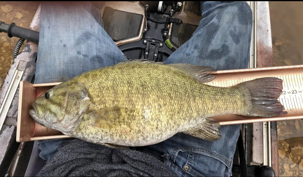 Fishing Megathread: Looking For Big Girls Who swallowMalibuSheriff replied to Mac8111's topic in Hobbies Upper Illinois River and a tributary. When I grew up in Tulsa, 30+ years ago we always had native smallmouth in the Illinois but a big fish was as 3 lbs. Oklahoma Department of Wildlife stocked Lake Tenkiller (which Illinois River feeds) with Tennessee-strain smallmouth in early nineties. Those Tennessee-strain fish have migrated up the Illinois and those fish are huge. Legit 7 lb.+ smallmouth are abundant now both in the lake and tributaries. Below is not my fish/photo but one shared on a guide’s website that was caught recently: