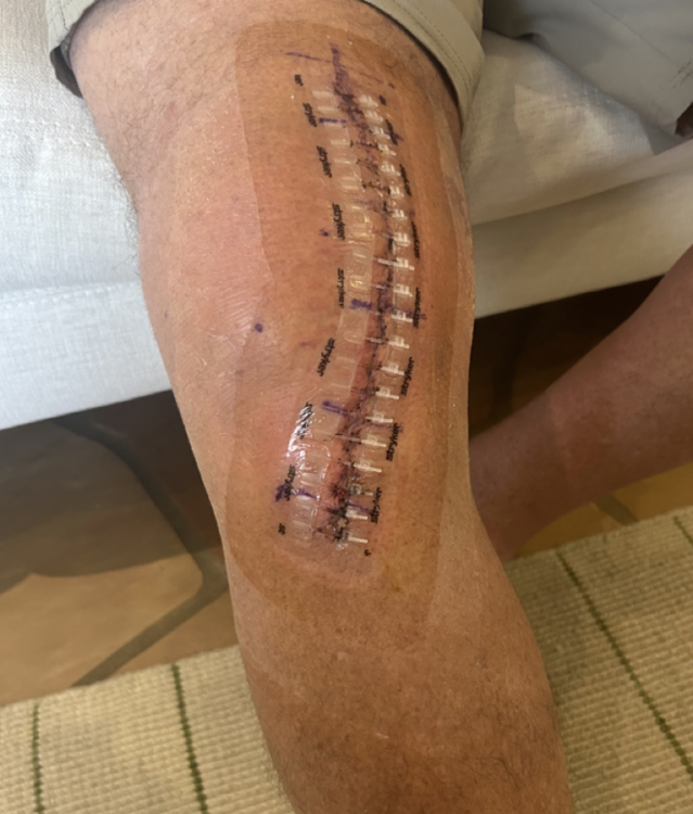 A client of my brother (who owns a gym) had a knee replacement called a "Jiffy Knee". Avoids cutting through a lot of the muscles and tendons of a "traditional" replacement (the pic attached is him, you can see the incision is more to the side than the ones I'm used to seeing). He was walking with a cane and almost no apparent pain the day after the surgery. Played golf two weeks later. He was a former CEO for an insurance company you've heard of, so I tend to think this wasn't some fly-by-night experimental surgery. If I ever need a knee replaced, I know I'll at least look into it.