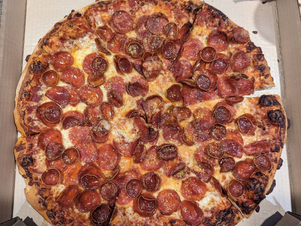 Just ordered dominos out of desperation. Pan with extra cheese, extra pepperoni, jalapenos on half and well done. Will report back.