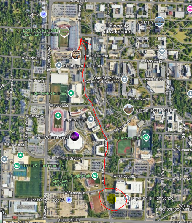 Ok sounds good. I will likely be tied up with parenting duties for this one, so I doubt I can spend a lot of time running a big tailgate. That said, if anyone picks up the banner, let me know and I may be able to help. We will likely park at the Fayetteville High School - and it would also make for a decent tailgate spot. I assume there would be plenty of room if people show up early. Closer to the stadium would have required some additional pre-planning.