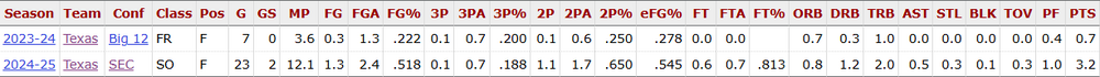 I wouldn't be too quick to judge Codie based on his first year. He was the National #66 recruit in last year's class. KJ Adams was also the #66 national recruit and had a progression like this: Codie will eventually make a leap. If not this year, then the year after. -