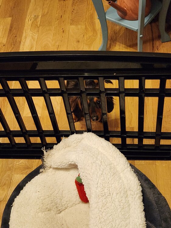 12. when i got Duke i bought a bag so i could take him everywhere... and i didn't used it once and ended up giving it away. turns out i am not one of those 'take your dog everywhere' people lol. we do take him to explicitly dog-friendly places though... why not, he brings joy to people. but 6he has freaking loved his playpen since day one and gets excited when we bring it out, basically begs to get in it lol we have a camera on him and are comfortable leaving him 6-7 hours at a time. i mean he basically just sleeps anyway. and yes, i have used this thread as an opportunity to post pics. you're welcome. 😊