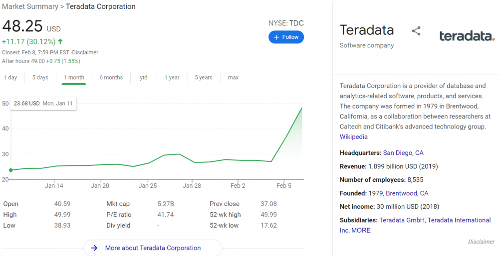19. Thoughts on TDC? Reddit post from this morning before it jumped 30%. It's gone from $22 to $48 over the last month link to reddit thread in spoiler