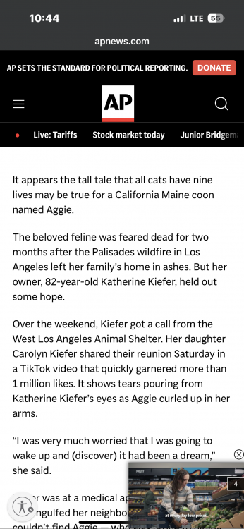 12. Cat’ll continue to ignore the people who love and feed him, but still. Good story. https://apnews.com/article/palisades-wildfire-lost-cat-reunion-tiktok-6bfdda3716228cecb39519a9667fd1e4