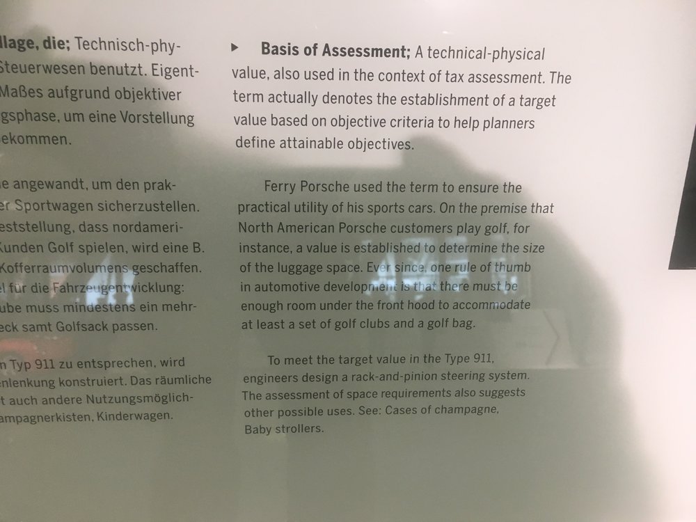 16. CSB/ I visited the Porsche museum in Stuttgart a couple of years ago and there is plaque in the museum that outlines the Basis of Assessment.