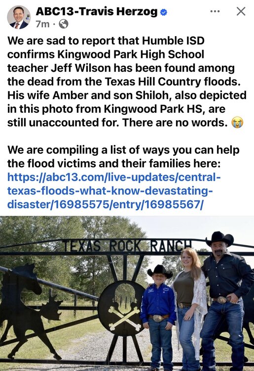 Man this is all just so much to take in. After living through Harvey, other Hurricanes, and numerous flood events it’s all so tiring (even when you’re not directly involved. Other than the unbearable heat most summers, I love this state and its people. It’s so heartbreaking to see just story after story of loss and sadness. Then to see good news sprinkle through just to give a little lift. I can’t imagine what the people who have lost loved ones are going through. It just doesn’t seem fair at all. To Texas and all of you. Hope I can help other than monetarily.