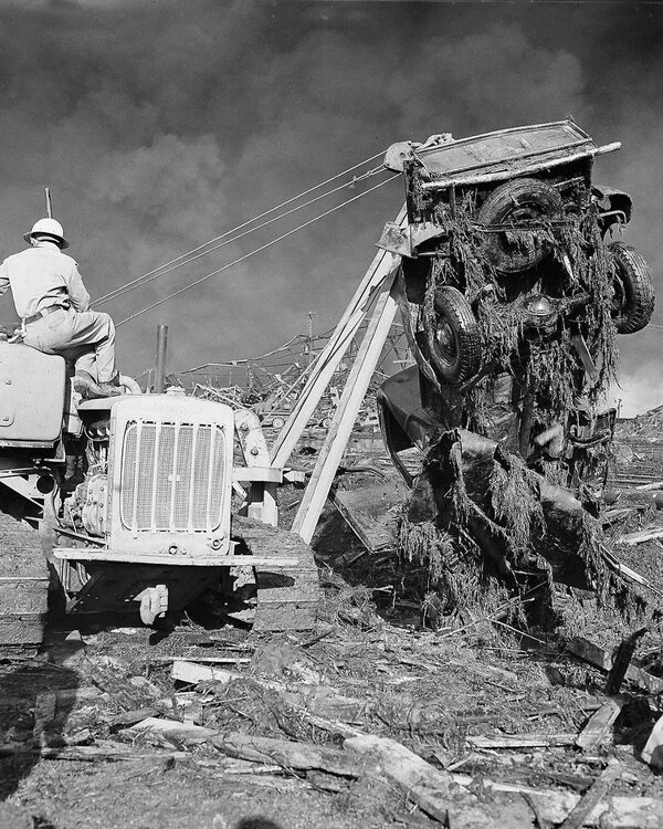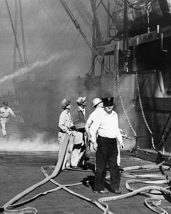 This is from Texas City's home page this morning - "On this day 78 years ago, at 9:12 a.m., the cargo ship SS Grandcamp detonated in Texas City after its load of ammonium nitrate caught on fire. It exploded with a force more powerful than an atomic bomb. It caused a 15-foot tidal wave that crashed onto the dock and flooded the surrounding area. Windows were shattered as far away as in Houston, and people in Louisiana felt the shock, more than 250 miles away. Nearly 600 people were killed, including all but one member of Texas City's volunteer fire department, and thousands were injured. Close to 1,000 buildings were leveled, and an estimated 500 homes were destroyed. Later, another ship also carrying ammonium nitrate, the High Flyer, exploded with even more force, resulting in more deaths, injuries and destruction. It was the deadliest industrial accident in U.S. history. Throughout the day, we will be honoring those who were lost in the 1947 Disaster, sharing stories of survivors and highlighting the amazing resiliency of our community." Growing up hearing first-hand accounts of that day from my mom and dad, I was always surprised that many people had never even heard much about The Texas City Disaster. Honestly, growing up in Texas City I don't really even remember being taught that much in school about it either. My dad's father was the Fire Chief for Texas City during this period, and the fire department were all volunteer at this time. (I will post my mom and dad's stories below.) In addition to the death and destruction on that day, the long term effects of that day were not so nice either; Alcohol issues, mental problems and lingering health problems for some. Below, is from my parents point of view regarding that day, and that is the last picture of my grandfather with the black hat, on the dock. BAUMGARTNER, HAROLD J. "BUMPY" We lived at 519 7th Street North behind City Hall. The Kirbys lived on the south side of us and the Maddux family on the north. We were having breakfast, and my father was leaving for work at the Texas City Terminal. I noticed the smoke, told Mother about it and went outside for a better view. It was about 8:20, and nofire alarm had sounded. Two friends, James Menge and Bucky Whitly, rode up on thier bikes and asked me to ride with them for a closer look. I yelled to Mom that I'd be back. Near Texas from 6th Street we saw the fire was on the docks. We stopped near 3rd Street where the dock road crosses the dirt levee. Policeman Jim Bell rode up to direct traffic and prevent non-essential people from going to the docks. A huge crowd had already gathered. The Grandcamp's whistle sounded several short blasts, and the crewplaced large timbers over the hatch emitting orange smoke, Hold #4, to introduce live steaminto the hold to smother the fire. My father had told us about a fire in the hold of a ship moored at this pier two days before which took about 20 minutes to put out. The Coast Guard inquest into the cause of the disaster verified that fire had been aboard the Grandcamp in Hold #2. James and Bucky joined some friends on the east side of 3rd. (Bucky later died instantly from a shrapnel wound to the head.) I moved down the levee on the south bank as my brother rode up on his motor scooter. He had clutch problems and didn't stay long. A young couple in a '36 Ford Coupe parked across the street from me as a continual stream of spectators joined the scene. No. 4 hatch cover rattled and jumped up and down after the pressurized steam was introduced, causing decomposition gases to evolve. The siren at the terminal sounded at 8:30 a. m. Many people left the immediate dock area, including the ship's crew. The Texas City Fire Department had not been summoned to the fire. Seven minutes later city sirens sounded, and fire trucks soon arrived. The first, driven by Clarence Wood, approached the ship about 8:45, followed shortly by the other three which initiated much activity- firemen playing out hoses, dropping suction hoses into the slip, spraying streams of water on the burning ship, and men arriving in private cars until a full compliment of twenty-seven men were there. Hold #4 started rattling and jumping and blew a seal. Some of the timbers, now afire, flew into the air and fell back into the open hatch. When the smoke erupted, it was dirty brown, indicating an advanced state of decomposition of the ammonium nitrate or that possibly Bunker C fuel was leaking into the hold and burning with the nitrates. Sharp, cracking sounds came from the hold as firemen on deck played water streams into the hatch. I could see my father, Fire Chief Henry J. Baumgartner, on the ship with about a dozen men. The water looked like it was turning into steam. No one knew it, but it was already to late to conquer this fire. Right after Dad arrived, he told a fellow terminal employee: "This is a dangerous fire. We need all the help we can get!" Two Piper Cub airplanes circled the docks. I looked up as one banked above me to turn towards the dock. Louder cracking sounds came from the ship. I looked down. The ship disintegrated before my eyes. Objects of all sizes shot into the air from the fireball before the sky turned hazy and dark. The ground shook violently. The shock wave - overpressure- sped across the open field and slapped the trees to the ground. There was no time to react. The seismic wave reached me in about 0.2 seconds, the shock wave in 1.7 to 1.8 seconds. The ground shock's noise and the intensity of the overpressure were incredible. It lifted me over the levee, and blew me across 4th Avenue and rolled me into a ditch about 190 feet away. I waited to see if more explosions would follow as people ran screaming from the area, caught in no-man's land with no place to hide. To the north and south lay a block of open land, to the east, an inferno. There was no time to reach the homes to the west. Jim Bell picked up his Harley-Davidson, about 850 pounds, tried to crank it, but it