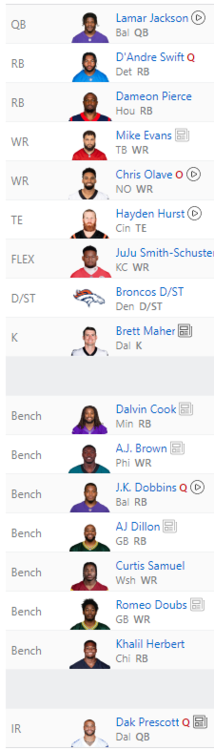 10. Pick 2, 1.0 PPR, bolded currently in the lineup. Najee Harris v TBay (2) Raheem Mostert v Minn (22) Eno Benjamin @ Sea (30) Drake London v SF (10) DeVonta Smith v Dal (18)