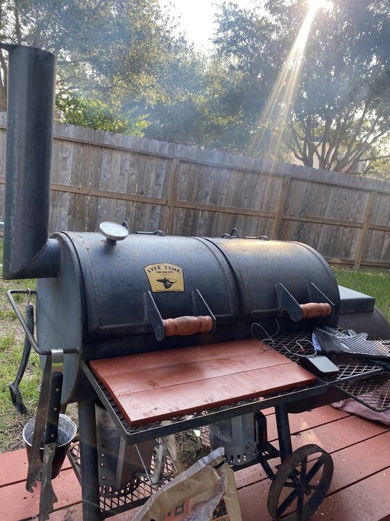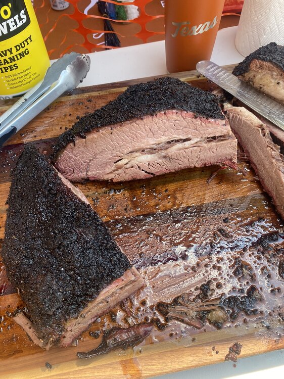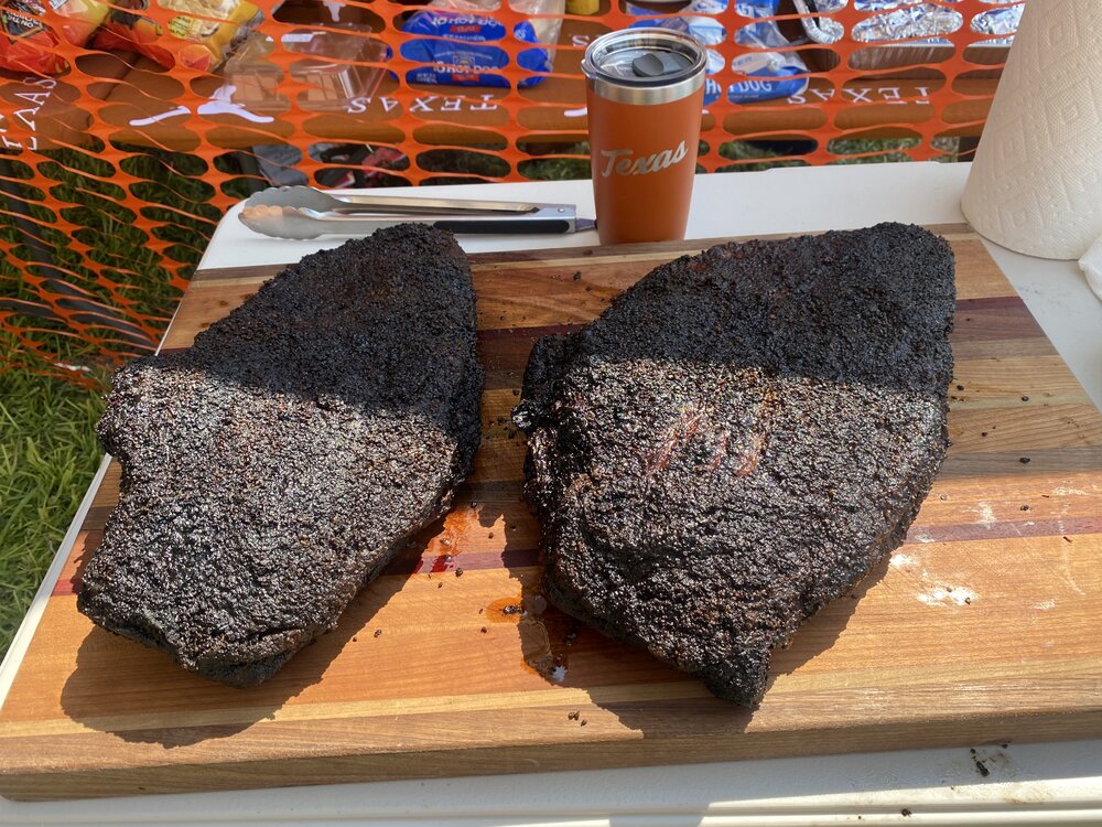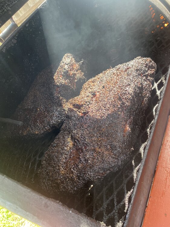 Thursday night - Smoked both 14 lbers for 14 hrs w/ post oak.