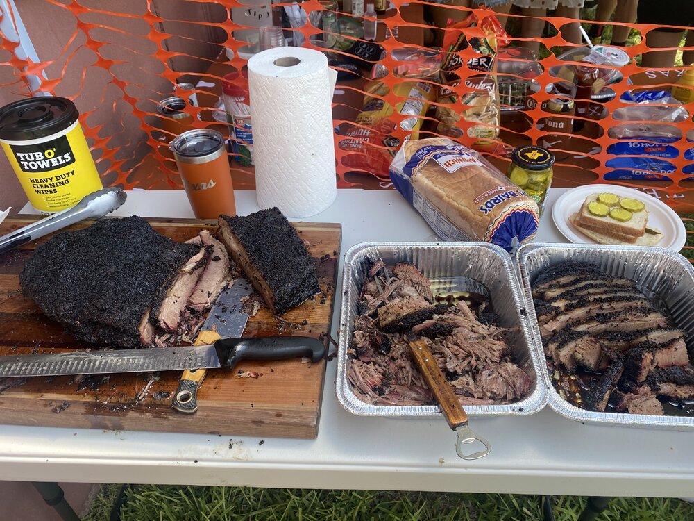 Wrap again, load in yeti, head to tailgate, setup brisket station.